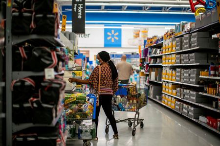 (Reuters) -Walmart Inc raised its annual sales and profit targets on Thursday as shoppers snapped up its low-priced groceries and other essentials.
