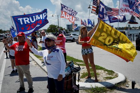 MIAMI (Reuters) -Former President Donald Trump arrived in Miami on Monday to face federal criminal charges, while a new Reuters/Ipsos poll found a vast majority of his fellow Republicans believe the case to be politically motivated.
