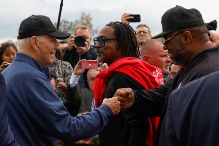 BELLEVILLE, Michigan (Reuters) -President Joe Biden on Tuesday joined a picket line with striking autoworkers in Michigan, supporting their call for a 40% pay raise and saying they deserve a “lot more” than they are getting.