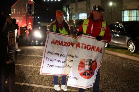 LONDON (Reuters) -Amazon workers walked out on strike at multiple locations across Europe on Friday in protests against the U.S. e-commerce giant’s working practices on one of the busiest shopping days of the year.