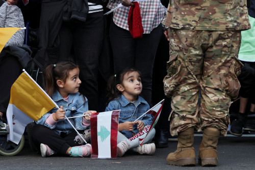 Hours before Leo’s arrival, crowds gathered along the roads from the airport to the presidential palace, waving Lebanese and Vatican flags.