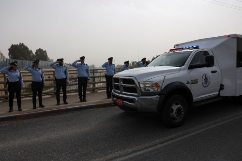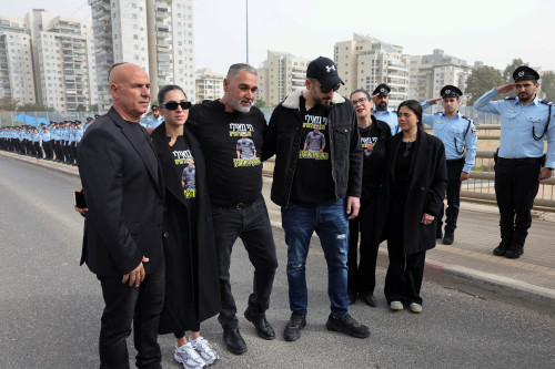 His casket was driven to the funeral in a procession beginning in Camp Shura, a facility where Israel identified victims of the October 2023 attack. Police and civilians carrying Israeli flags lined parts of the route.
