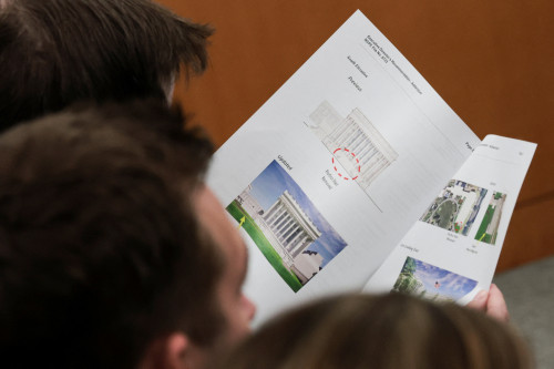 Over a dozen protesters gathered outside the commission building ahead of the vote, holding signs that read, “Hands off the people’s house”, among other messages, and displaying a stack of boxes they said contained 35,000 comments from the public, with 97% of them against the project.